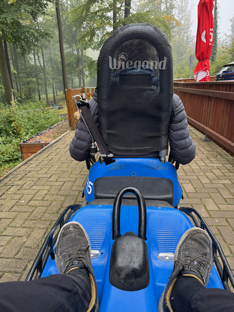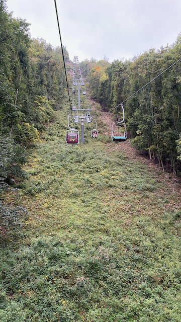Da noch gut zwei Stunden Zeit sind bis zu unserer Reservierung im dem Ferienhausdorf angeschlossenem Restaurant Peter’s nehmen wir den anderen Gipfel, die Rosstrappe, ins Visier, zu dem keine Gondelbahn, sondern ein Sessellift hinaufführt. Das letzte Mal Sessellift gefahren bin während einer Skifahrt in der 10. Klasse und ich hatte ganz vergessen, wie wunderschön und ruhig es ist, dem Gipfel auf diese Weise entgegenzuschweben.