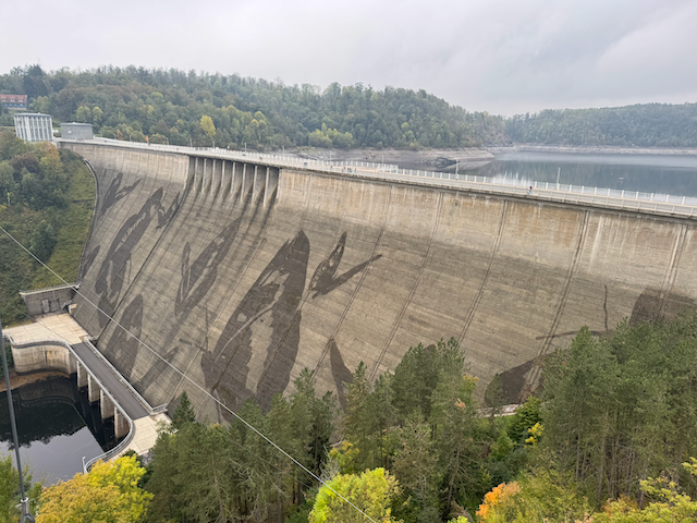 Wieder unten wanderten wir den knappen Kilometer zurück zu unserer Unterkunft und machten uns von dort auf zur Rappbodetalsperre. Die Talsperre ist mit ihrer 106m hohen Staumauer und bis zu 110 Millionen Wasserspeicher die höchste Staumauer Deutschlands.