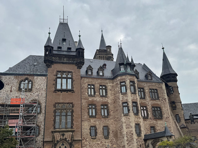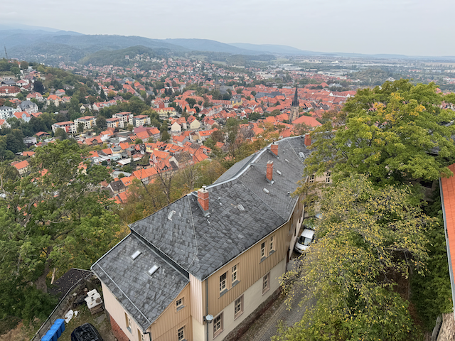 Am nächsten Morgen geht es – für einen Sonntag – sehr früh hoch. Bereits um 8 Uhr klingelt der Wecker. Zum Einen, weil wir das Haus um 10 Uhr verlassen müssen und zum Anderen, weil Heiner nach dem Frühstück gestern unbedingt noch eins draufsetzen musste und uns ein komplettes englisches Frühstück kredenzte. Mit vollem Magen und sehr zufrieden fahren wir nach em Aufklaren zu unserem letzten Programmpunkt und besuchen Wernigerrode. Wir fahren mit der Schloßbahn zum Schloss hinauf, genießen den herrlichen Ausblick auf Wernigerode und wandern dann mit einem kleinen Abstecher in die Altstadt wieder hinunter. Am Parkplatz verabschieden wir uns und treten dann mit zwei Autos den Heimweg an.