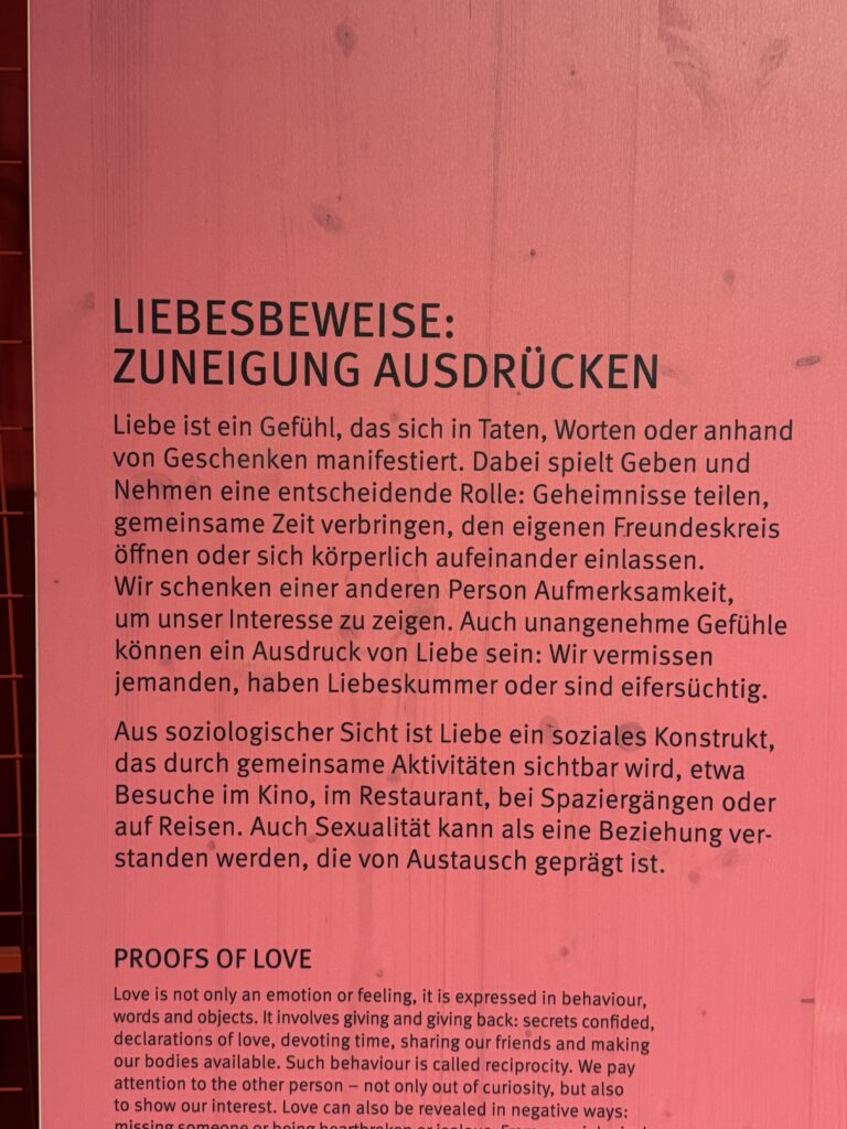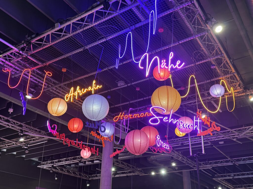 Wir beginnen unsere Erkundung mit der derzeitigen Sonderausstellung „Liebe“. Hier gilt es, in sieben Bereichen anhand einer Vielzahl von interaktiven Exponaten, Fotoserien und Präparaten alle Facetten der Liebe zu beGREIFEN und zu erfahren. Von (natürlich) romantischer Liebe über Elternliebe bis hin zu erstaunlichen Fakten aus der Tierwelt wird nichts ausgespart.