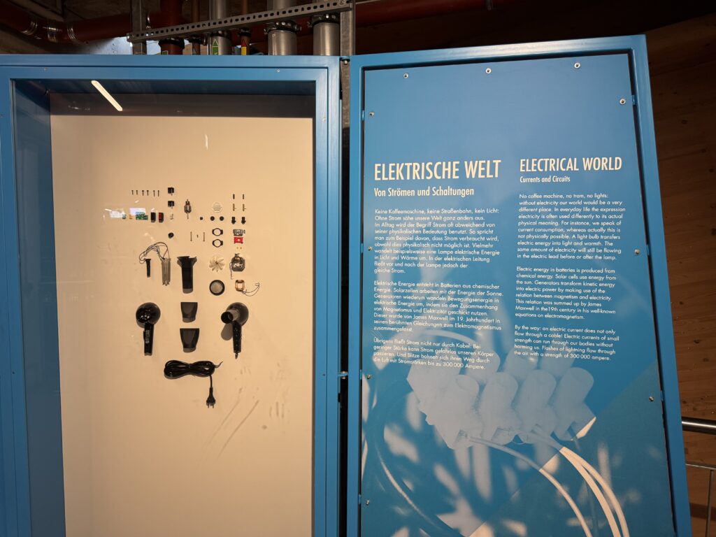 Im Hauptgebäude ist die Daueraustellung auf drei Etagen in die drei Bereiche Technik, Mensch und Natur aufgeteilt, jeder Bereich mit zahllosen Exponaten und Stationen zum Ausprobieren.