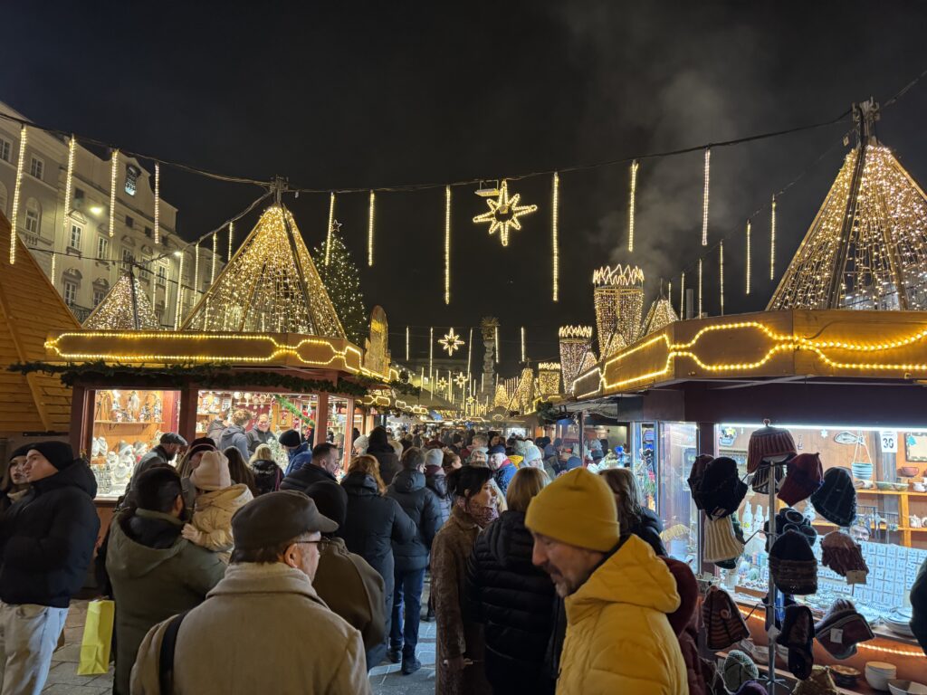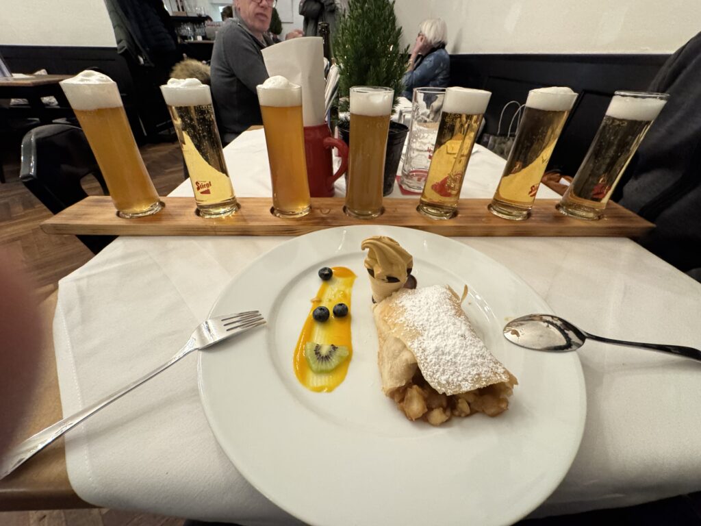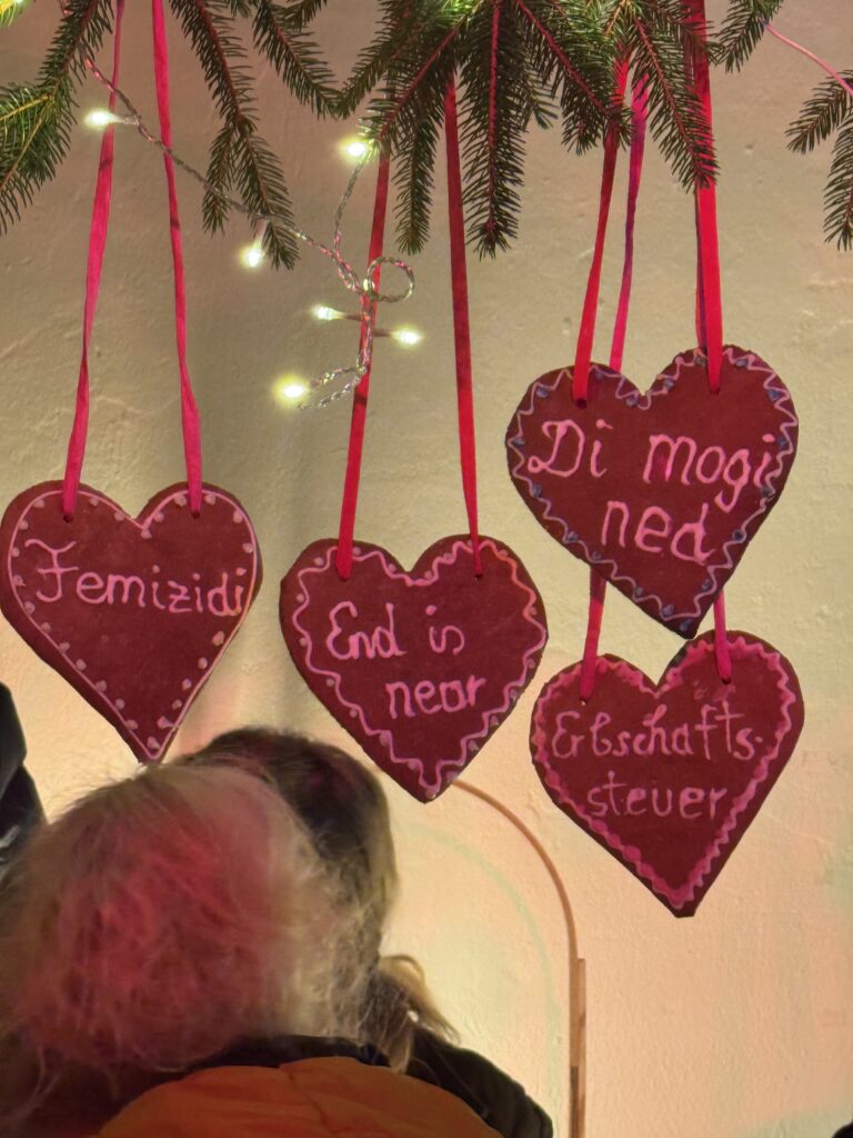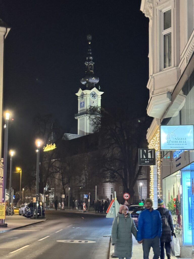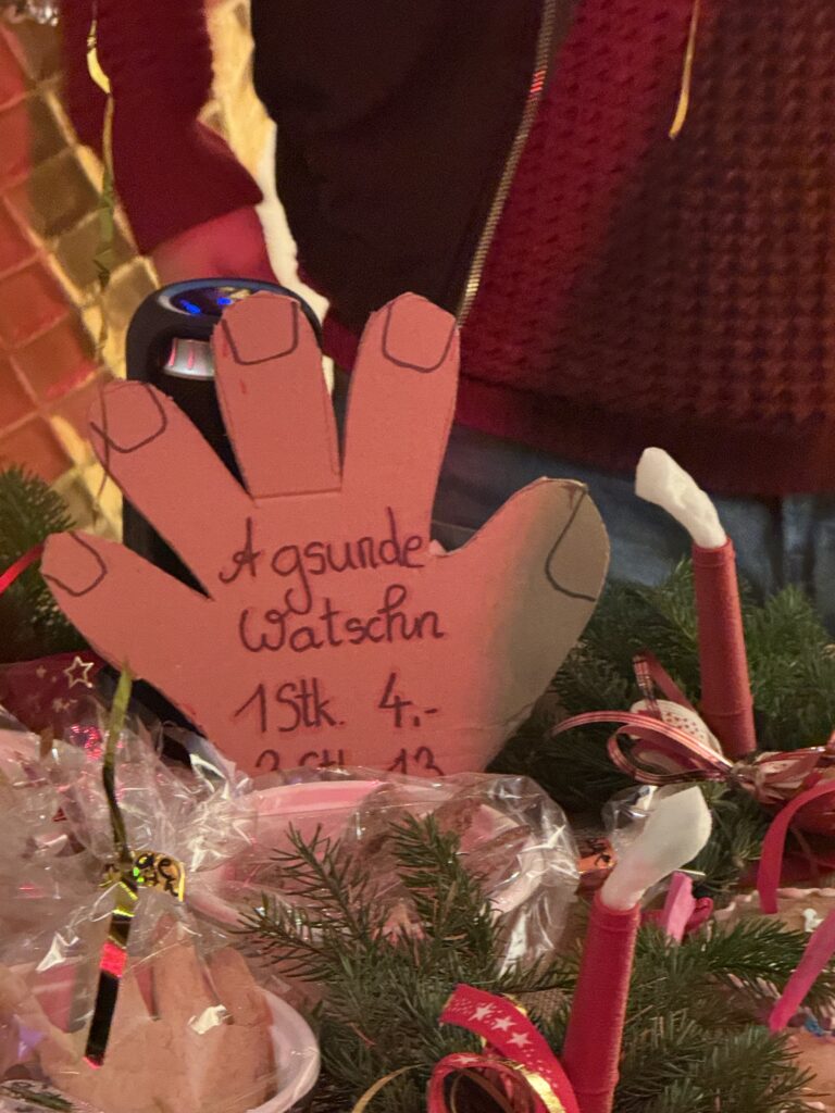 Abends sind wir auf einem ganz besonderen Weihnachtsmarkt „der anderen Art“. Der Christgsindlmarkt bietet mit einem deftigen Augenzwinkern Standbetrieb und Weihnachtsmusik der anderen Art. Hier sehe (bzw. höre) ich zur Eröffnung, wie schwer es ist, Weihnachtsmusik falsch zu spielen, wenn man eigentlich sehr gut Trompete spielen kann und bin schwer beeindruckt davon, mit welcher Liebe Marktstände neu interpretiert werden können. Vom weißgewandeten Priester, der die Biersorten „Sündenbock und Nullbock“ feilbietet über „inspirierende“ Weihnachtskarten der anderen Art und ganz einzigartige Schneekugeln aus Marmeladengläsern bis hin zum Holzwerker- Stand für Stand macht es riesigen Spaß, von den Verkäuferinnen und Verkäufer in Gespräche verwickelt zu werden und das eine oder andere Feilgebotene käuflich zu erwerben. Um viele Schmunzler – und eine Akkulaufzeit-Verlängerungs-Energiekarte – reicher beschließen wir den Abend bei Thomas zu Hause.