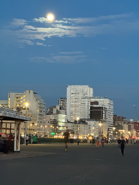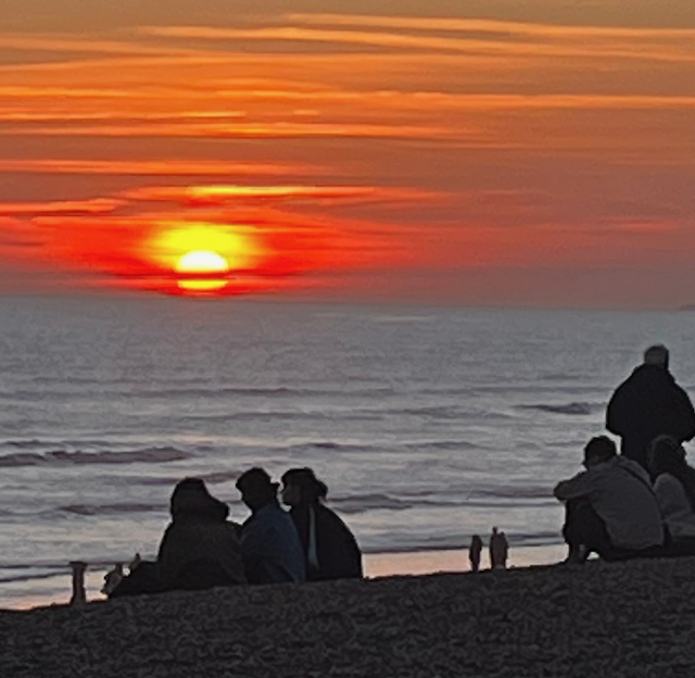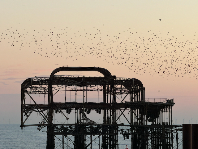 Auf dem Rückweg gönnen wir uns ein Eis und schauen den Möwen dabei zu, wie sie über das Stahlskelett der 2003 abgebrannten Westpier kreisen. Und wir haben nach diesem wundervoll sonnigen Tag mit vielen tollen Eindrücken noch das Glück, dass wir einen schon fast kitschig zu nennenden Sonnenuntergang erleben dürfen.