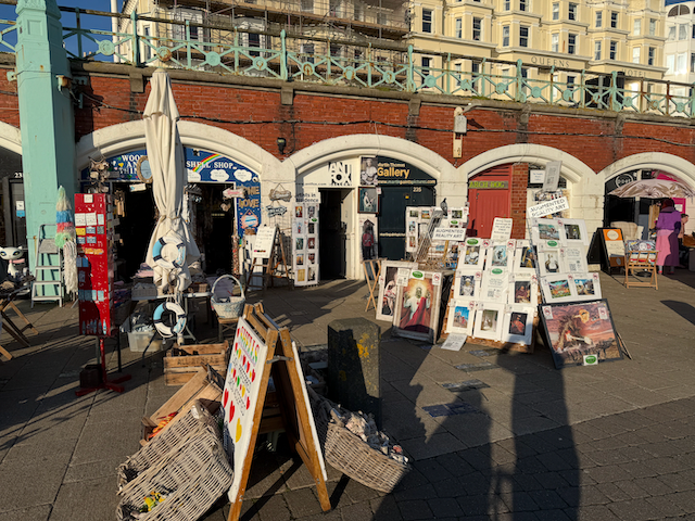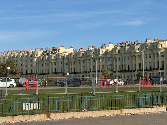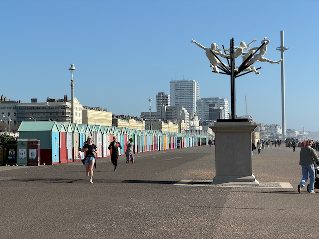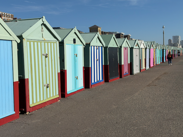 nach einem ausgiebigen und sehr gutem Frühstück überqueren wir die Straße vor unserem Hotel und befinden uns direkt auf der Strandpromenade von Brighton mit den bunten und markanten Badehäuschen.