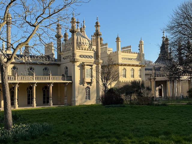 Wieder unten angekommen geht es weiter zum Royal Pavilion. George IV. ließ ihn als als Prince of Wales als königliche Sommerresidenz in den Jahren 1815 bis 1823 errichten. Der Pavilion ist im Stil eines indischen Mogulpalastes erbaut und von innen im anglo-chinesischen Stil gehalten. Insgesamt wirkt er nicht nur aus der Zeit gefallen, sondern auch örtlich leicht deplatziert. Allerdings lohnt sich der Besuch nichtsdestotrotz- allein die prunkvoll-üppige Inneneinrichtung lässt einen von Raum zu Raum staunen.
