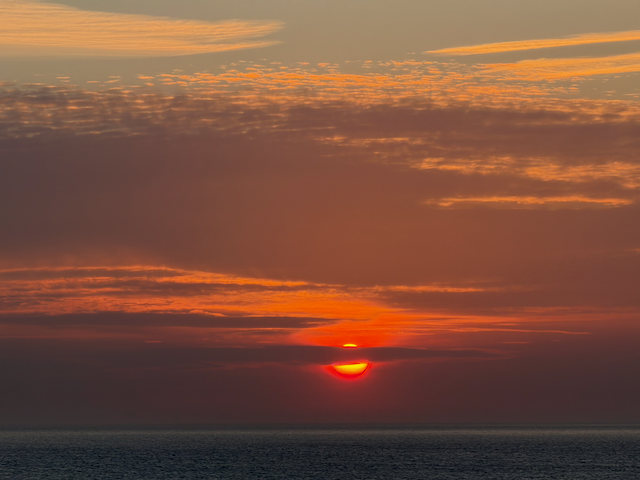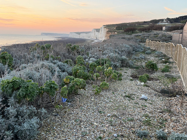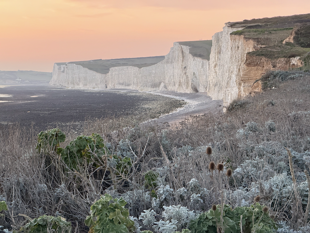 Nach einer längeren Pause auf der nächstgelegenen Bank erreichen wir den Parkplatz gerade noch rechtzeitig, um in Birling Gap noch einen imposanten Ausblick auf die Seven Sisters und einen weiteren schönen Sonnenuntergang zu bekommen.